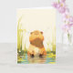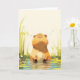 Cette adorable carte de voeux est l'illustration charmante d'un capybara debout paisiblement dans une eau peu profonde, son visage relevé d'un sourire heureux. Entouré d'une verdure douce et feutrée, ce capybara fantaisiste dégage une atmosphère sereine et joyeuse, parfaite pour apporter joie et calme à tous ceux qui le reçoivent. Idéale pour les amoureux des animaux et les fans de capybara, cette carte capture un moment ludique mais apaisant dans la nature. Le design minimaliste et les couleurs douces le rendent adapté à un large éventail d'occasions, des anniversaires aux moments de juste-parce, ajoutant une touche de tranquillité de la nature à tout message.