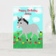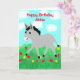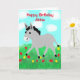 Illustration d'un mignon âne trottant à travers une prairie fleurie. Personnalisez facilement cette carte d'anniversaire d'âne en modifiant le texte modèle. Belle carte anniversaire de enfant. Merci d'avoir vu mes dessins.