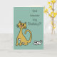 Un chat et une équipe de souris, ou des ennemis, délirant, dépend de la façon dont vous choisissez de les interpréter. Style de dessin animé primitif pour les deux animaux, un chat caramel et une souris blanche sur un arrière - plan vert turquoise et poussiéreux, regardant fasciné par quelqu'un hors de l'avion photo et notre vue, qui a mentionné quelque chose à propos de l'anniversaire de quelqu'un!