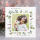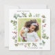 Cette carte carrée de vacances comporte des baies rouges, des branches de pin, de l'eucalyptus et des feuilles vertes peints à l'aquarelle avec les mots « Joyuses Fêtes ». Personnalisez-la en changeant l'image et le texte par vos propres photos et texte.