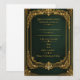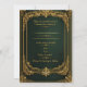 Célébrez dans un style royal avec ce carton d'invitation de mariage en vert émeraude et or. Avec un cadre vintage orné et une typographie élégante, ce design personnalisable est parfait pour les mariages de luxe, formels et glamour.