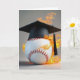 Un baseball portant une casquette de remise des diplômes est entouré de flammes, symbolisant un mélange d'éducation et d'intensité sportive. Le texte est modifiable.