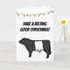 Voici un magnifique taureau Belted Galloway avec un drôle de Joyeux Noël ! Il est également prêt à ajouter le nom de votre propre ferme, message ou nom ! Ces rares Beltie cows écossaises sont dociles et robustes.