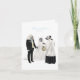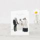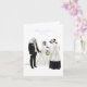 Envoyez vos meilleurs vœux au couple heureux avec cette douce carte de mariage, montrant Dotty Dog, le dalmatien, habillé en ministre, célébrant une cérémonie de mariage pour les mariés, un caniche et un chat. Le verset de couverture dit "Félicitations M. et Mme"
