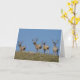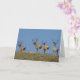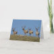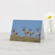 Carte de Cerfs Mulets en Velours. Des cerfs mulets avec des bois couverts de velours dominent une colline élevée sous un ciel bleu clair par un matin chaud de printemps.