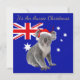 "C'est un Noël australien" texte. Un Koala australien avec le drapeau australien dans l'arrière - plan.