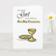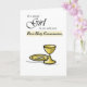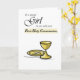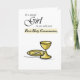 Envoyez des bénédictions et des voeux à une fille spéciale pendant qu'elle fait sa première sainte communion. Un calice or et paten se démarquent contre notre arrière - plan blanc de la carte. Belle carte à lui envoyer en ce jour religieux et saint.