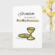 Lorsque votre petit-fils fait sa première communion sainte, c'est aussi un jour spécial pour vous. Cette carte blanche est l'arrière - plan parfait pour ce chalet doré de vin et paten pour hôtes.