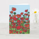 Beau champ de fleur de pavot avec des pavots rouge vif sur fond bleu et vert dégradé.