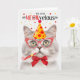 Marques de champagne d'argent pâle doux avec un blanc crémeux, cet adorable chat a l'air merveilleux dans les accessoires de fête sur cette carte d'anniversaire pour la journée spéciale de l'amoureux des chats.