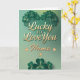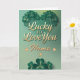 Célébrez votre moitié en cette fête de la Saint-Patrick avec une touche personnelle ! Cette élégante carte de vœux présente un magnifique cœur formé de trèfles verts et le sentiment romantique écrit en or, « Chanceux de t'aimer ». Parfaite pour un petit ami, une petite amie, un mari ou une femme, ce modèle peut être facilement personnalisé avec le nom de votre partenaire pour créer un objet de collection unique. Le fond dégradé vert clair et les accents de trèfle en font une façon élégante et attentionnée de montrer votre appréciation. Répandez la chance des Irlandais et la chaleur de votre amour dans une seule carte !