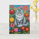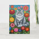 Carte Chat à rayures grises fluides avec fleurs d'art fo
