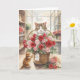 Carte Chat arrangeant des roses dans un panier de fleurs