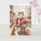 Carte Chat arrangeant des roses fleurs dans un panier po