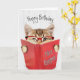 Carte Chat avec lunettes et livre rouge Anniversaire