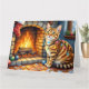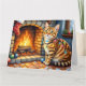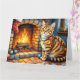 Carte Chat Bengal au coin du feu avec des lumières de No