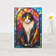 Carte de vœux charmante de style vitrail. L'or est imprimé (faux or), pas de feuille ou de paillettes. Le texte peut être modifié ou supprimé. Image générée par AI par IveyCottage.