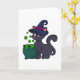 Carte Chat comme sorcière avec chaudron