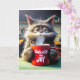 Carte Chat couché d'anniversaire de l'ami avec Mug rouge