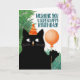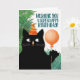 Carte de voeux d'anniversaire avec chat noir, plante et ballon. ♥ Collection correspondante pour la COORDINATION DES ARTICLES. ♥ Oeuvre originale de PUPSIKU STUDIO. Produit 100% exclusif.