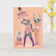Envoyez à toutes vos superstars passionnées de musique cette carte d'anniversaire mignonne montrant Dotty Dog, le Dalmatien, comme danseuse de soutien pour un Kitty chantant, qui se produit dans un léotard rose et des bottes haut genou. Une palette de couleurs violet, rose et pêche.