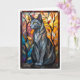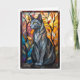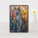 Carte de vœux charmante de style vitrail. L'or est imprimé (faux or), pas de feuille ou de paillettes. Le texte peut être modifié ou supprimé. Image générée par IveyCottage avec l'IA.