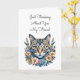 Carte Chat mignon dans les fleurs d'aquarelle Penser à v