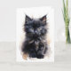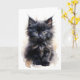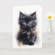 Carte Chat noir à poils longs et fourrure Flou Aquarelle