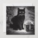 Voici une carte de Noël amusante avec un chat noir assis à côté d'un cadeau de Noël. C'est un peu gothique et a une ambiance légèrement vintage. Cela fait une belle carte à envoyer à un amateur de chats ou un gothique ou à offrir avec un cadeau.