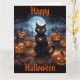 Carte Chat noir éffrayant avec Jack O'Lanterns