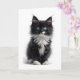 Carte Chat noir et blanc à longs poils Yeux bleus vides