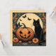 Célébrez la saison effrayante avec style grâce à cette carte de vœux carrée de 5,25" x 5,25" qui présente une illustration audacieuse et stylisée d'un chat noir et d'une citrouille lumineuse. Une lune pleine lumineuse se lève à l'arrière-plan, jetant une douce lueur sur les chauves-souris silhouettées qui volent à travers le ciel nocturne, complétant cette scène d'Halloween parfaitement sinistre. Cette carte est une version moderne de l'imagerie traditionnelle d'Halloween - à la fois effrayante et charmante, ce qui en fait un choix exceptionnel pour les amateurs de tout ce qui concerne octobre et l'automne. La forme carrée élégante ajoute une touche contemporaine, tandis que les motifs classiques d'Halloween lui donnent un attrait intemporel.