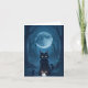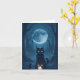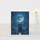 Personnalisez cette carte de vœux vierge avec un mignon petit chat noir assis dans les bois sous une pleine lune avec son petit compagnon chat noir et un cristal blanc brillant.