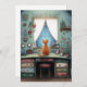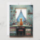 Carte Chat Orange Quirky à une fenêtre Bonjour plat