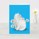 Chat persan blanc mignon avec fleurs marguerites blanches sur arrière - plan aqua pour anniversaire général. La couleur Arrière - plan peut être modifiée.