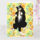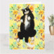 Chat noir et blanc smoking, se détendre, dormir, faire une sieste ! Fond floral.