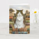 Un charmant tabby est assis avec bonheur sur des piles de livres anciens. Les chats et les livres semblent aller de pair. Lorsque vous lisez, ils viennent s'asseoir sur votre livre, ou pensez aux chats de bibliothèque et de librairie. Une carte parfaite pour l'amateur de livres anciens et la mère de chat.
