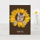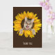 Chatte de tabby souriant dans le tournesol jaune pour vous remercier à un ami sur arrière - plan marron.