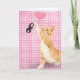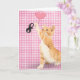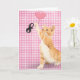 Chatte tabby or avec ballon de coeur rose pour 8ème anniversaire sur arrière - plan rose et blanc en vichy.