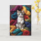 Carte Chat Tabby Mignon Jouant dans des Pelotes de Laine