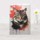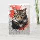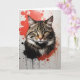 Carte Chat tigré à l'aquarelle éclaboussure d'art rouge