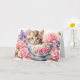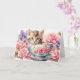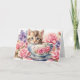 Carte Chaton à l'aquarelle dans une tasse de thé avec de