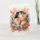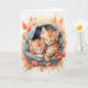 Carte Chatons tabby aquarelle dormant Fleurs Blanc