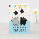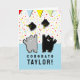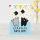 Carte de remise de diplôme mignonne pour les diplômés de l'école vétérinaire, les amoureux des chats et les seniors diplômés d'une école avec une mascotte de chat. Pour personnaliser, modifiez le texte pour ajouter le nom du diplômé.