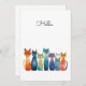 Chats turquoises, violets, verts et oranges qui veulent dire Bonjour sur cette carte fantaisiste. Tout le texte peut être changé à votre salutation préférée. L'IA a aidé graphisme acheté avec licence commerciale. Oeuvre : PeinturePixelCo