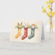 Ces cartes de Noël présentent un portrait aquarelle de trois animaux mignons qui sortent des bas contre un arrière - plan beige.
