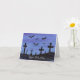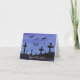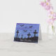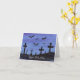 Un petit paysage à l'aquarelle de chauves-souris en vol au-dessus d'un cimetière la nuit orne cette carte effrayante d'Halloween. Personnalisez en changeant le texte à votre guise !