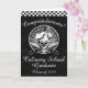 Félicitez le nouveau chef de la ville, avec cette carte de classe pour le diplômé de l'Ecole des Arts Culinaires, cours de 2015. Le design est composé d'un crâne de chef cool portant son casquette de chef. Des couteaux de chef sculpteurs traversés et fumants remplacent les arêtes traditionnelles, devant un mur circulaire en brique foncée. Des panneaux à damiers en noir et blanc bordent le haut et le bas de la carte. L'arrière - plan est un faux cuir noir. Intitulé "Génie culinaire", ce logo du chef a été conçu pour tout élève qui termine son éducation culinaire. Visitez www.zazzle.com/thechefshoppe pour voir plus de crânes culinaires cool conçus par sdesiata.