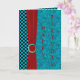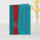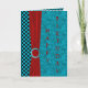 Carte à damier turquoise et noire riche avec un motif à pointes turquoise. Avec un ruban rouge velouté et un embellissement rouge et turquoise. Une carte de voeux personnalisée est le moyen idéal pour envoyer des voeux d'anniversaire à quelqu'un.