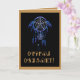 Dreamcatchers sont une belle création indienne conçue pour vous porter bonheur et harmonie. Cette carte comporte un dreamcatcher unique aux nuances de bleu et du pourpre sur un arrière - plan noir avec une frontière bronzage. L'anniversaire heureux de mots sont écrits en caractères cherokee dessous aussi dans bronzage.